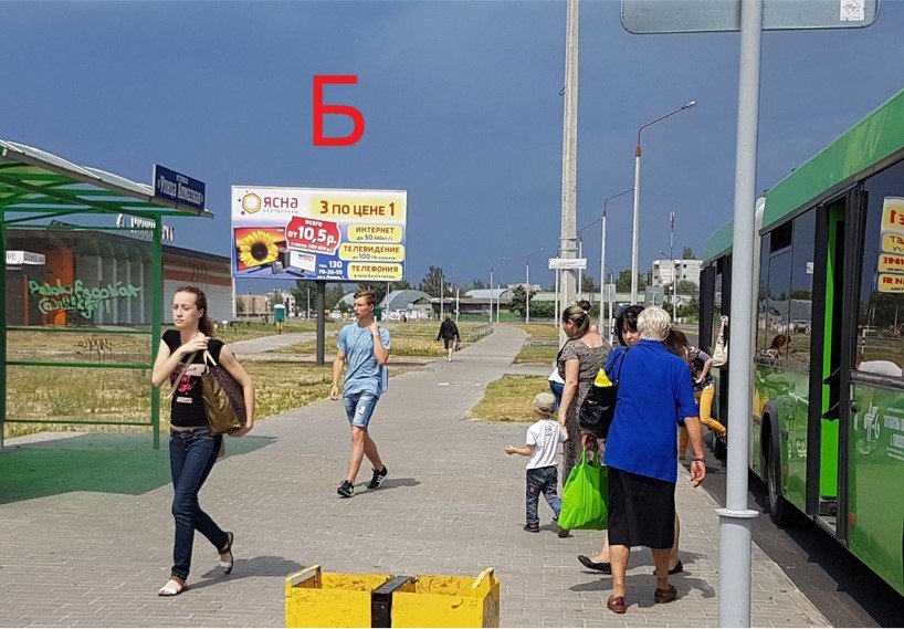 Билборд установлен в «Новобелице», в новом густонаселенном микрорайоне «Хутор». Здесь проходит единственный возможный маршрут общественного транспорта, соединяющий новые жилые районы (94й и 96й) с городом. Рекламный щит расположен в центре микрорайона, между двух остановок общественного транспорта и крупнейших в этой части города магазинов.