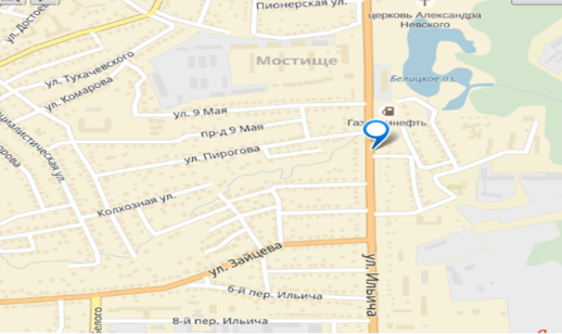 Месторасположение щита крайне выгодное: очень крупный мкр-н города с плотной жилой застройкой, эффективное тр-ное сообщение (легковой, грузовой и все виды общественного транспорта), перспективное окружение (наличие рынка и крупных ТЦ, образовательных учреждений и спортивно-развлекательных объектов). Сторона А работает в направлении к центральной части города. Сторона Б направлена на тех, кто движется в сторону нового «104го мкр-на», завода «Кристалл», к Центру радиационной медицины, в мкр-н «Хутор» и в направлении выезжающих из города в сторону Украины. Рядом находится рынок АЗС «Газпромнефть» и завод "Кристалл".