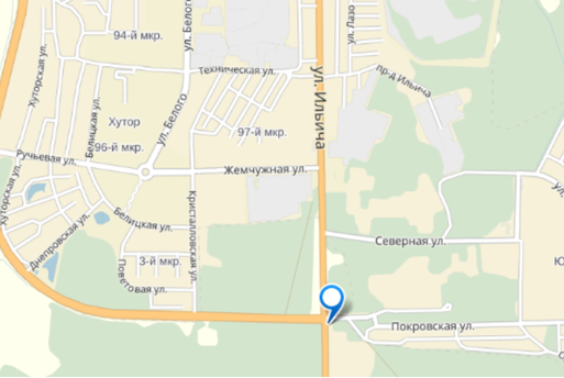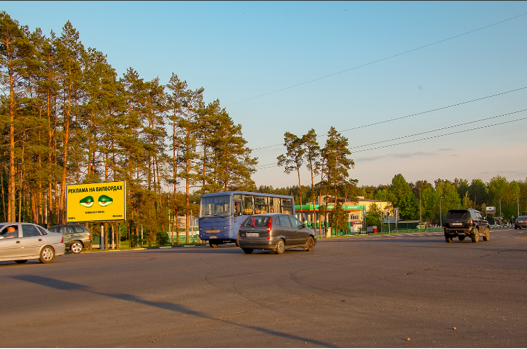Рекламный щит установлен на углу перекрестка ул. Ильича с Объездной Дорогой со светофорным регулированием, в направлении Украинской границы