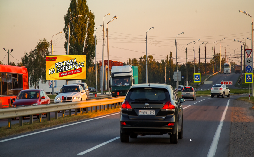 Двусторонний билборд на Объездной дороге г.Гомеля, участок «Север-Запад», в часы пик основной маршрут «Промзоны — Спальники — Промзоны», рекламный щит соединяет Речицкий проспект, улицу Барыкина, проспект Космонавтов и Советскую улицу. Объединяет въезды в Гомель с С.Петербург (Могилев) — Минск — Брест. Поток интенсивный.