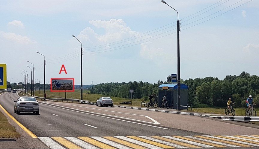Двухсторонний рекламный щит находится на магистрали, соединяющей «Советский» и «Новобелицкий» районы Гомеля. Сторона А работает в направлении выезда из Гомеля в сторону Украины, центра Радиационной медицины. Рекламный щит установлен перед поворотом на поселок Севруки и Ченки.