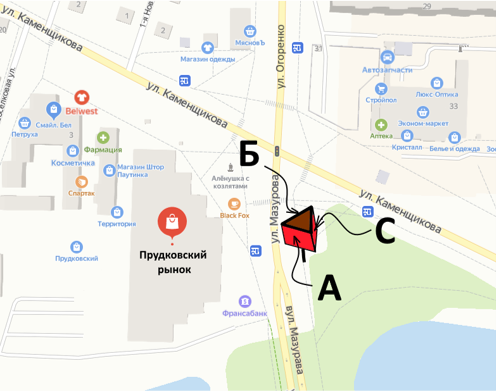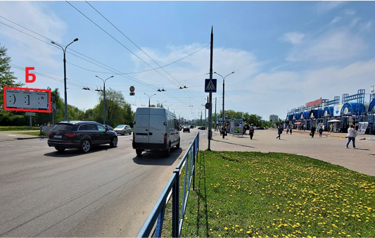 Билборд расположен на перекрестке ул. Каменщикова и ул.Мазурова напротив «Прудковского рынка».