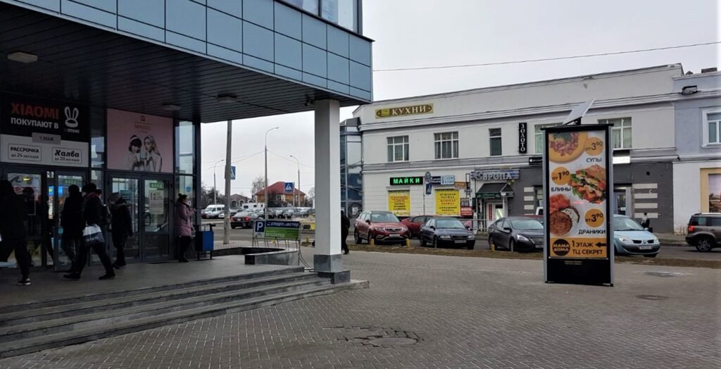 Рекламное агентство в Гомеле предлагает размещение рекламы на пилларсах (трехсторонняя рекламная тумба) на улице Гагарина, 65 – у входа в ТЦ “секрет” со стороны Центрального рынка.